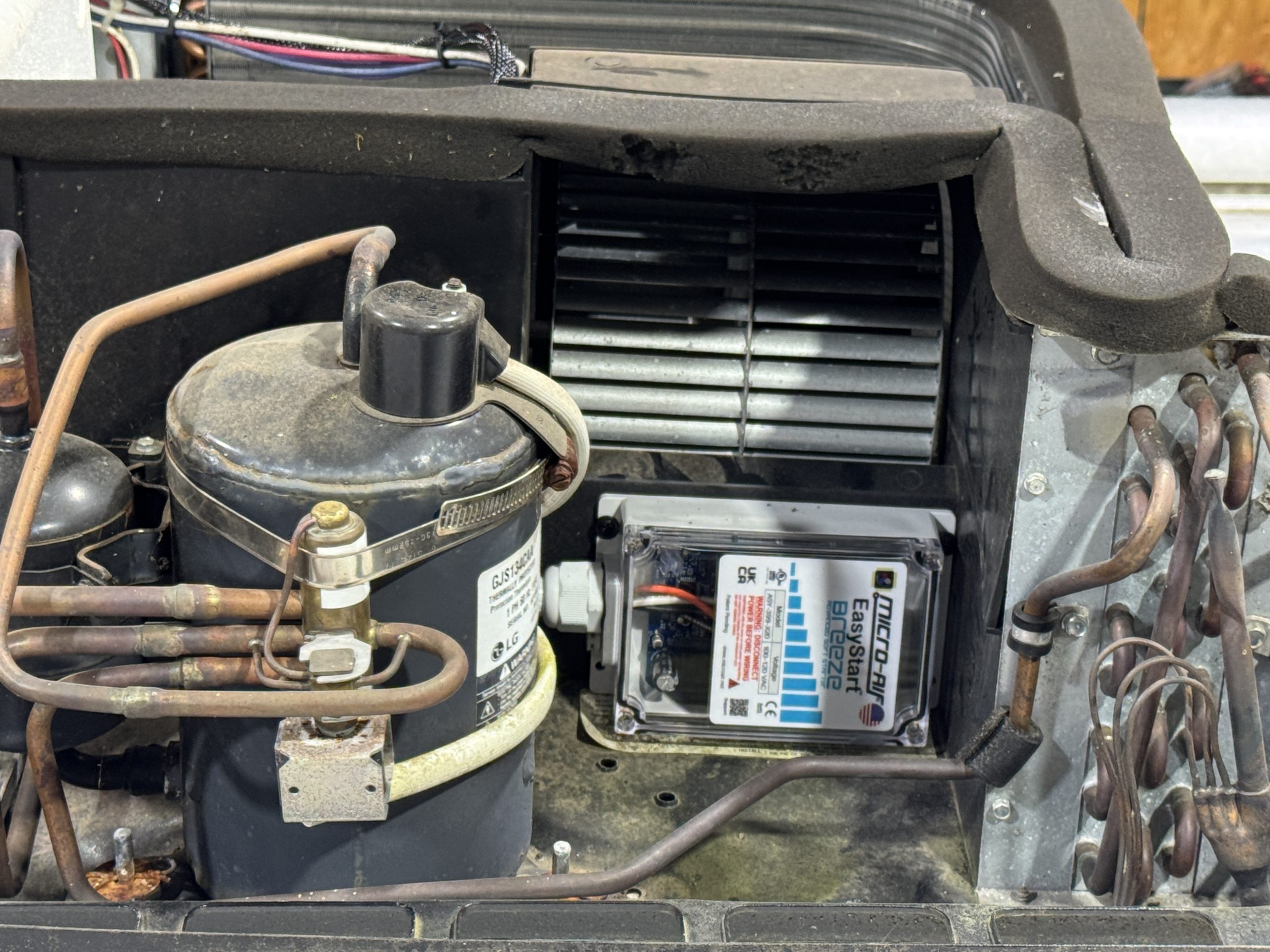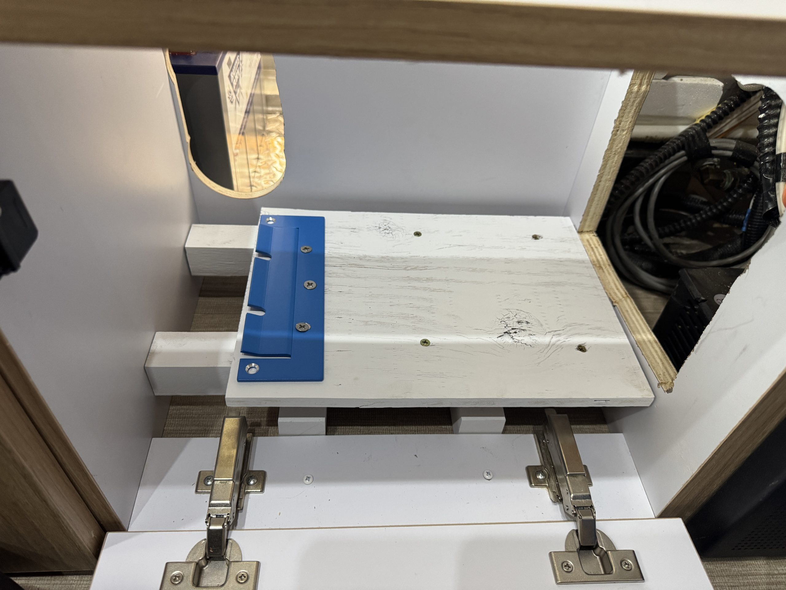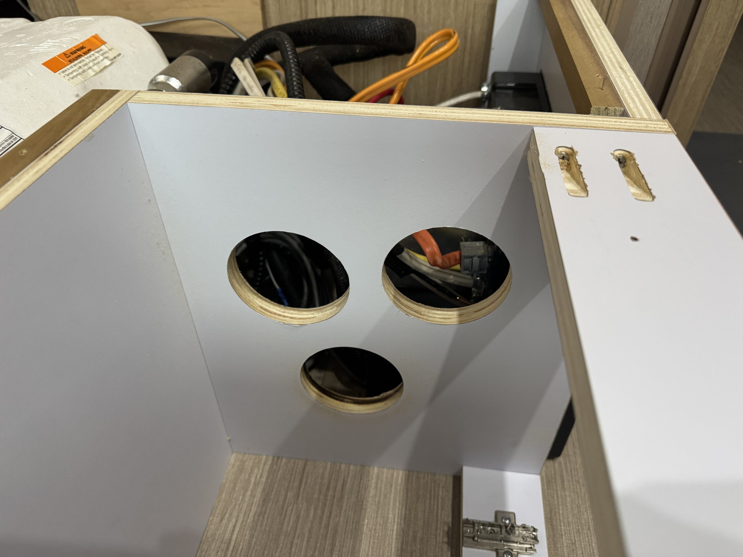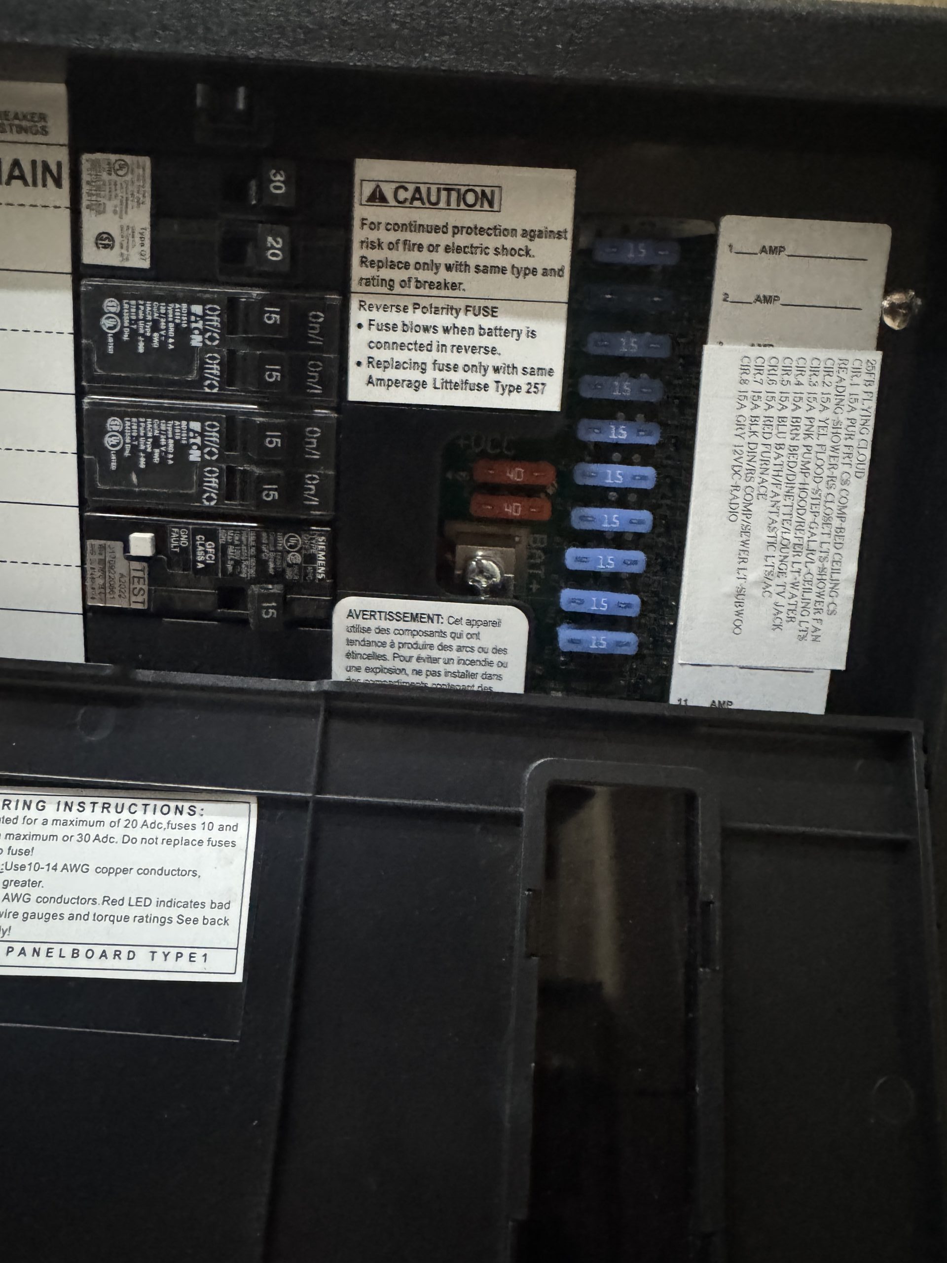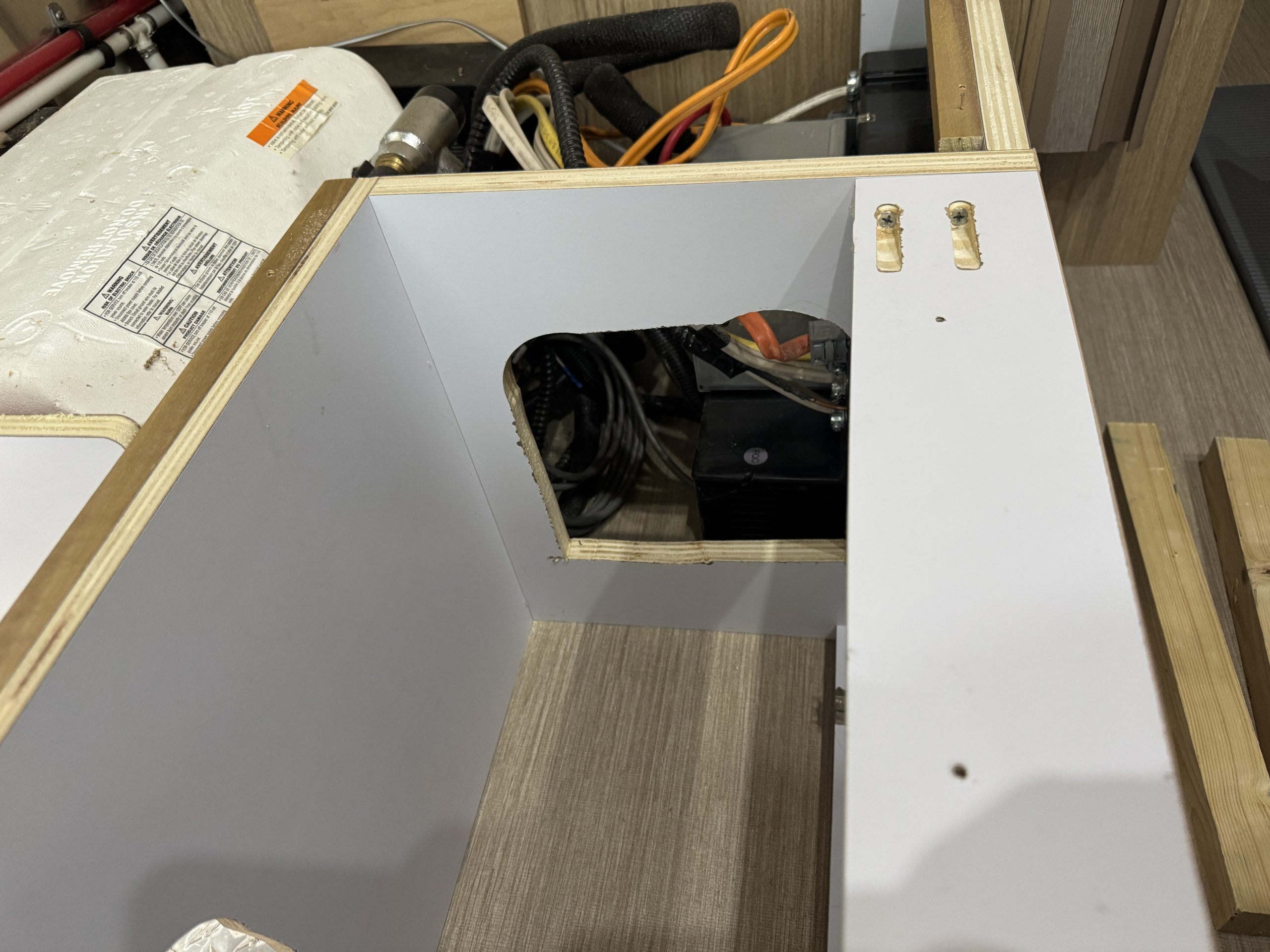 This installation was completed in May of 2025. The owner of this Airstream contacted me regarding a possible installation and we had discussions about various options. I presented the customer with estimates and system schematics for those options. The customer selected the option he preferred and we set an installation date. The installation took three days to complete. Initially, we discussed installing the system in the front exterior storage compartment, but after receiving the trailer for installation I found the passenger side exterior storage compartment and one small interior storage compartment would work better for the installation. These two compartments combined were slightly smaller in size than the front compartment, so less overall storage space was lost with the installation. The customer did gain the OEM battery box as a new exterior storage space as well. The new installation location put the inverter closer to the AC distribution panel and made wire runs easier to manage. The batteries fit perfectly in the side storage compartment and the inverter fit perfectly in the small interior storage compartment. I cut some holes in the side and back of the small interior storage compartment to allow for air flow around the inverter. I also built a platform under the inverter to leave an air gap underneath it to help with air circulation. In extreme use conditions, the door to this compartment has quick release hinges and can easily be removed for additional air flow around the inverter. Airstream trailers are always tight on space when it comes to adding a solar system and I try to minimize the amount of storage space lost when I complete an installation. This trailer had pre-run 10 AWG wire from the roof down to a dead space next to the side storage compartment where I mounted the batteries. This dead space was also where the OEM 12 volt distribution box was located. There was enough room in this dead space for me to mount the MPPT as well. This kept all the equipment within a few feet of each other and kept all the wire runs short. I changed out the OEM solar combiner box on the roof because it used proprietary connections rather than the standard MC4 connectors I needed for the solar panels. In order to make room for all the solar panels on the roof, I also removed the OEM over the air TV antenna (which the customer said he never used). With the antenna removed, there was just enough room to install eight 110 watt Newpowa solar panels. It was a tight fit on the roof though. The panels were installed with screws and Dicor sealant. I had discussions with the customer about using VHB tape to mount the panels initially. Once I test fit the panels though, all of the outside Z-brackets overlapped existing lap sealant seams and made using the VHB tape mounting method impossible. The customer was not opposed to using mechanical fasteners on the roof, so that was what I did instead. All of the equipment (other than the solar panels) was completely hidden from view with the installation, but was easily accessible for any future service needs.