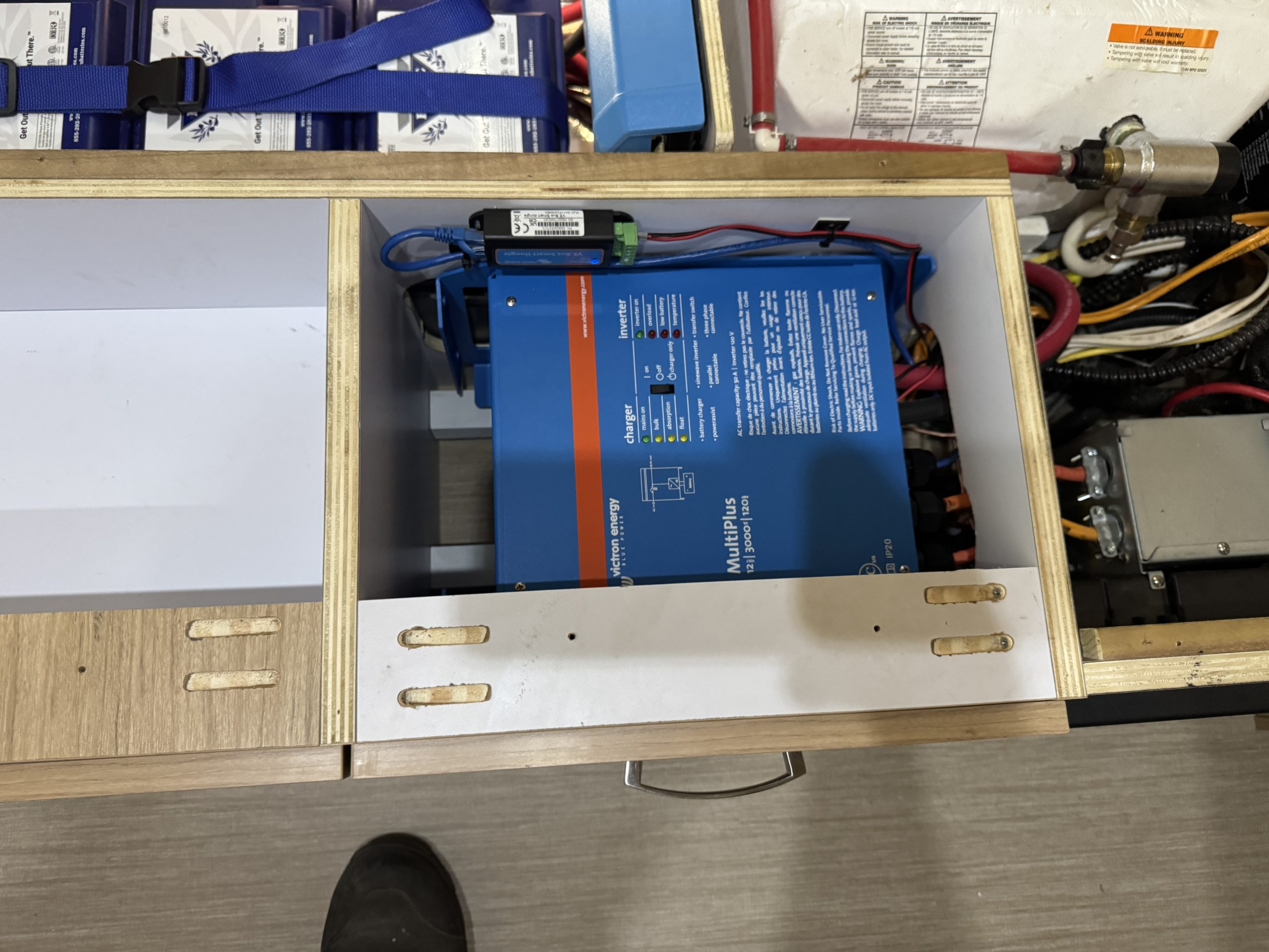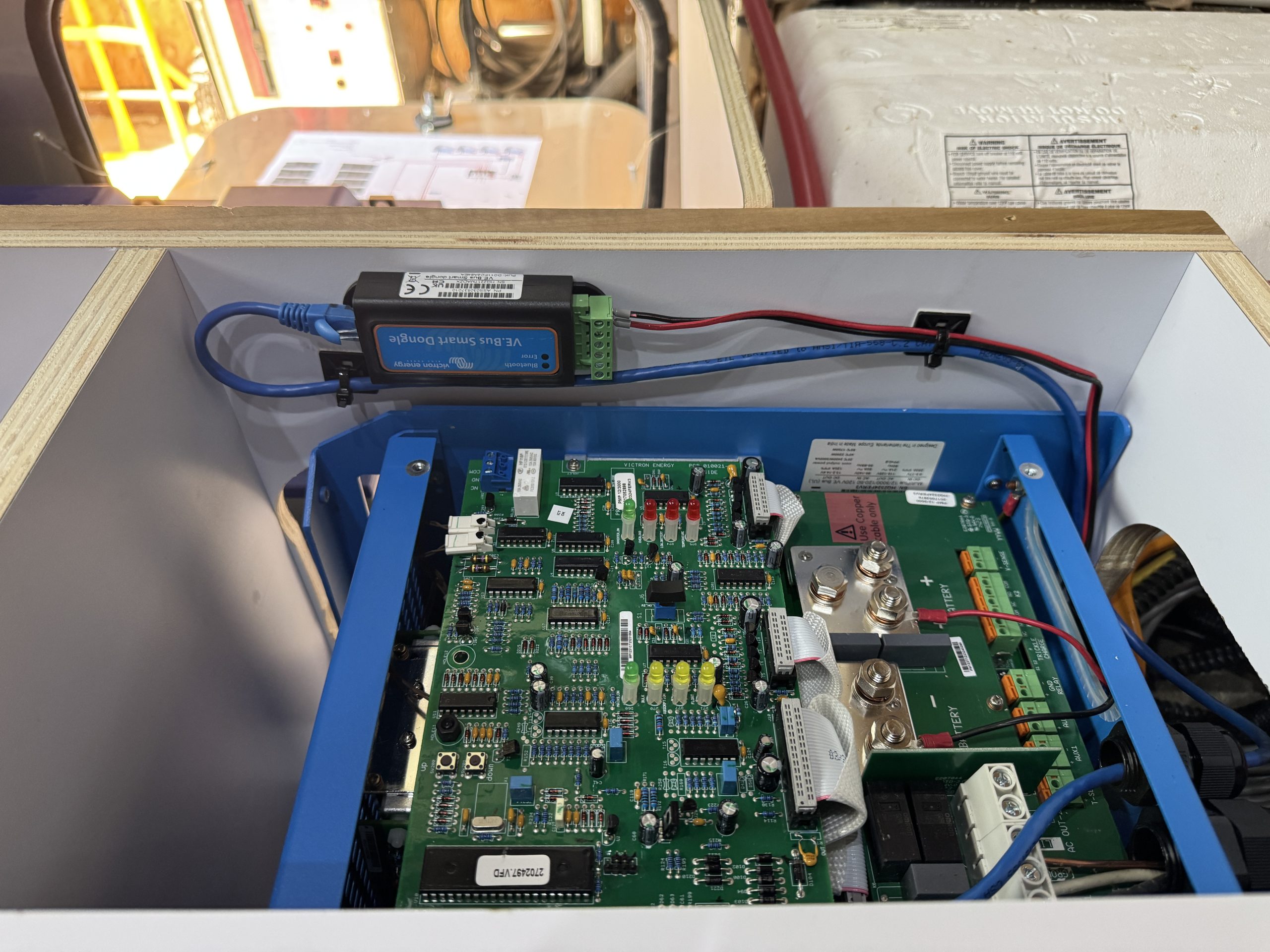 - Victron VE.Bus Smart Dongle – allows Bluetooth connectivity to Multiplus