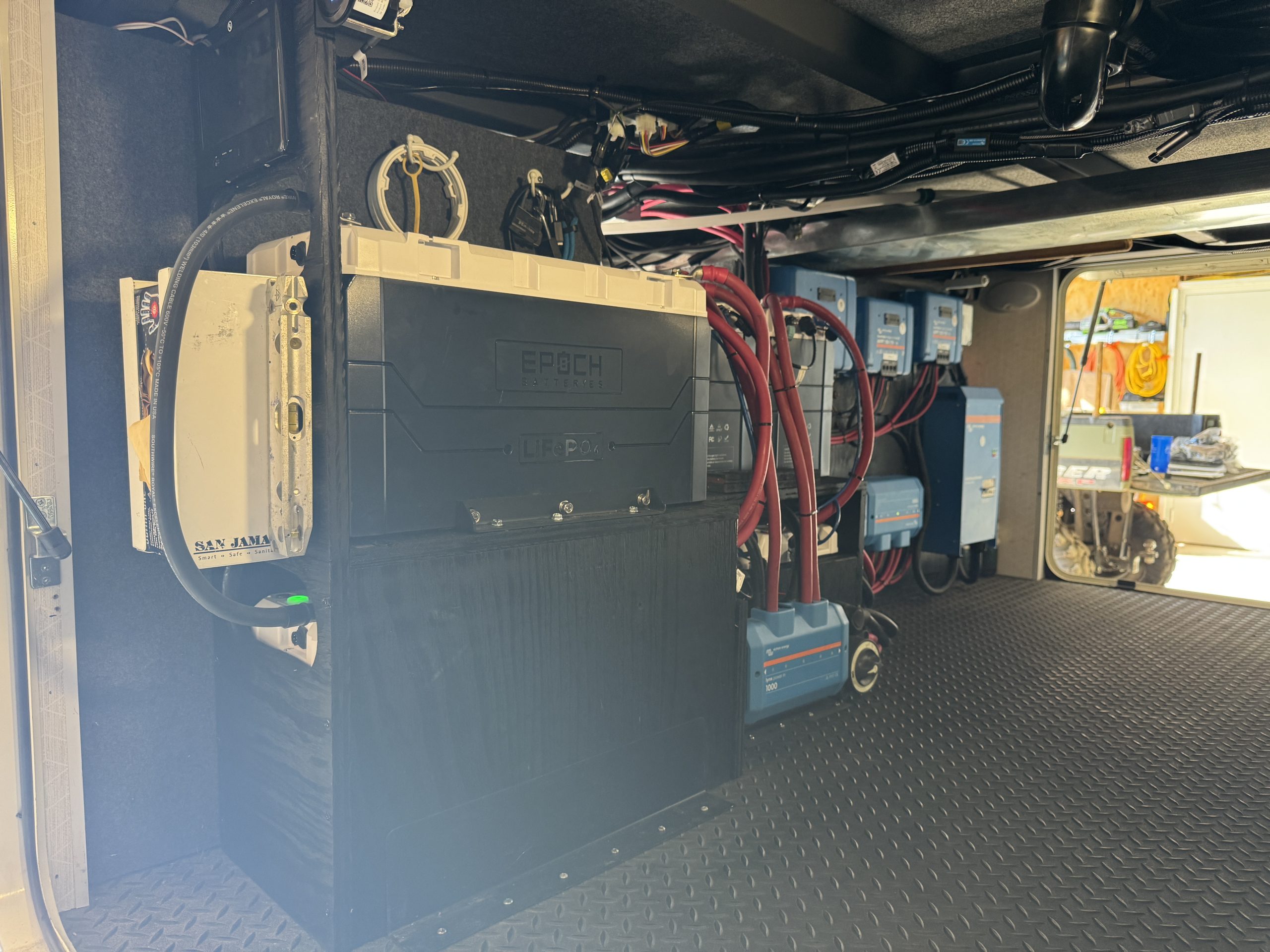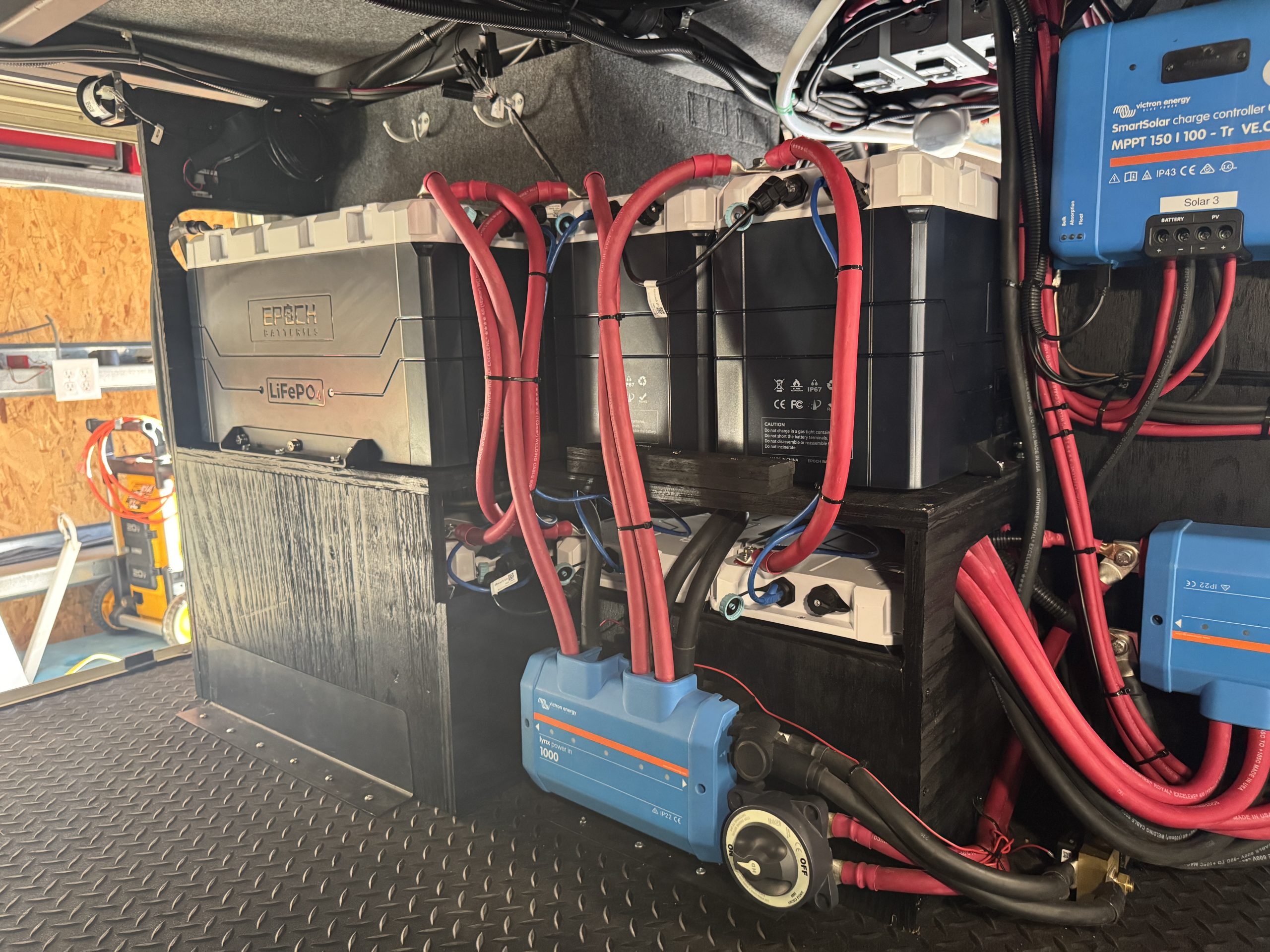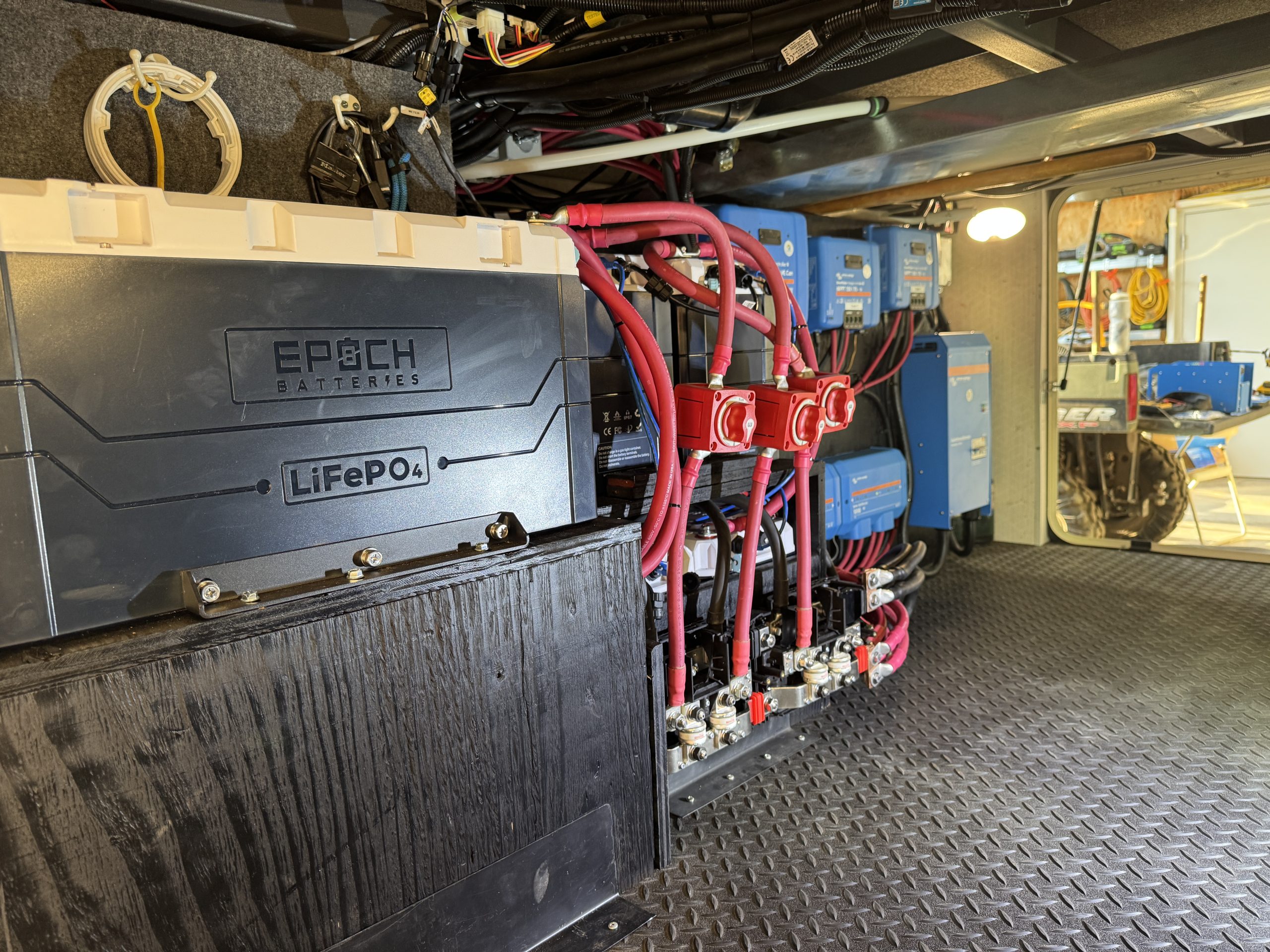 This installation was completed in August of 2024.  This is my personal RV and I have been using this system since I installed it in June of 2022.  This year I became on EPOCH battery dealer and I decided to upgrade the Battle Born battery bank in my system to a larger EPOCH battery bank.  There was nothing wrong with the Battle Born batteries.  They functioned flawlessly and I will be using them in a new system in my truck.  The EPOCH batteries offer different features than the Battle Born batteries and are constructed of prismatic lithium cells rather than the cylindrical cells Battle Born uses.  Because I am no an EPOCH battery dealer, I wanted to get some personal experience with them.  I don’t like selling products to customers with which I do not have personal experience.  This helps me from a technical standpoint for system design, installation and support.