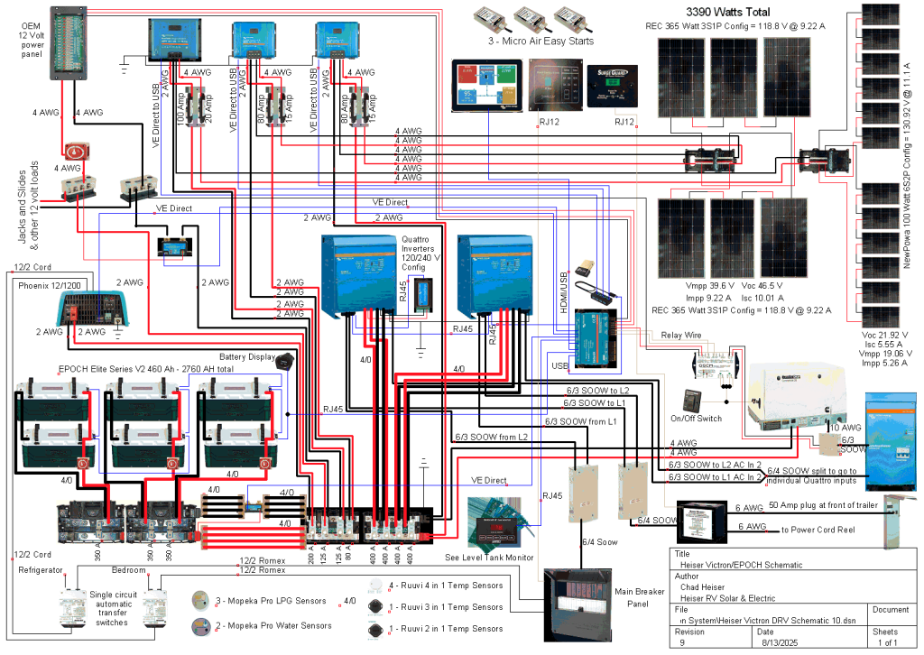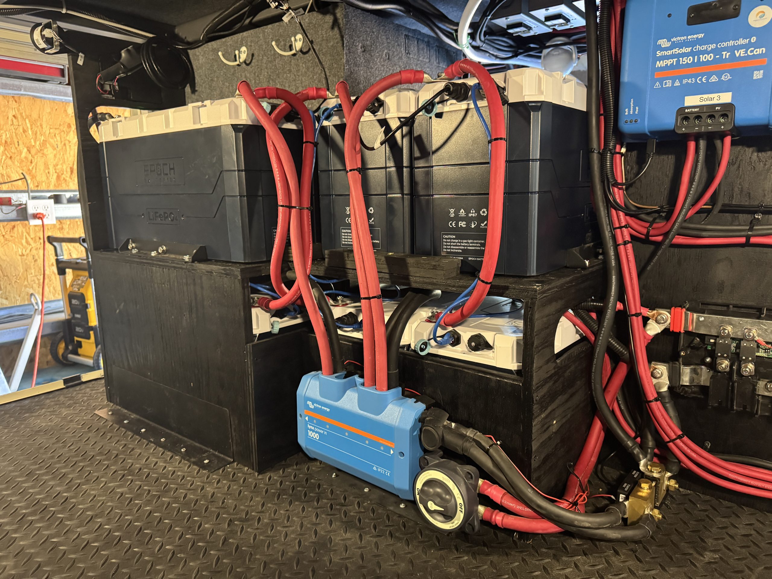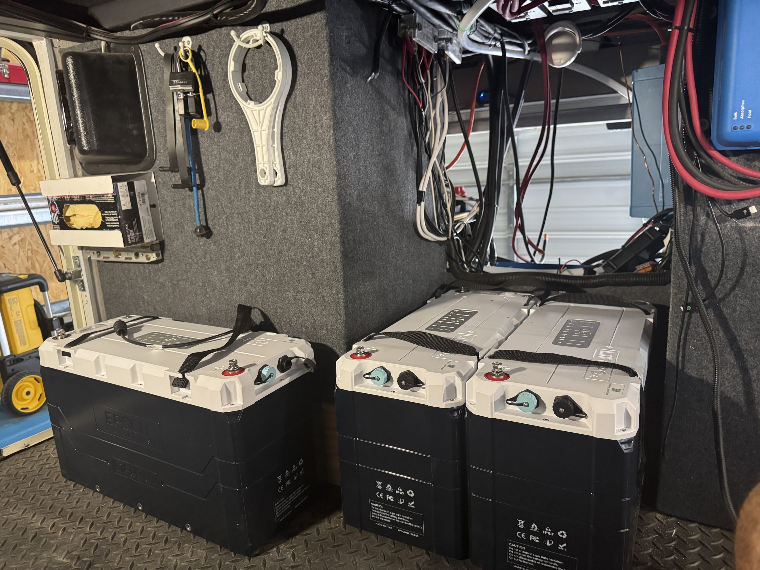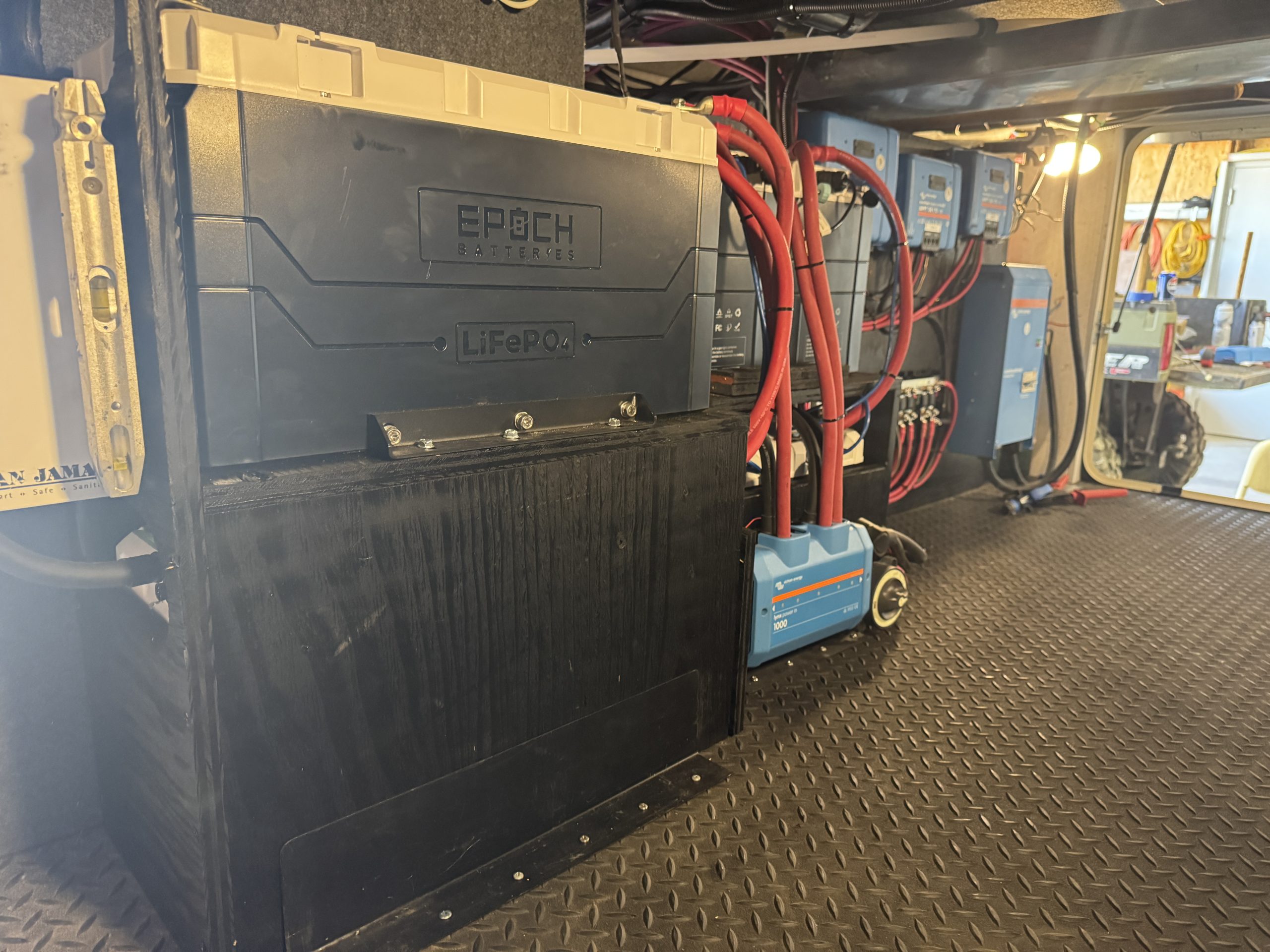 This installation was completed in August of 2024.  This is my personal RV and I have been using this system since I installed it in June of 2022.  This year I became on EPOCH battery dealer and I decided to upgrade the Battle Born battery bank in my system to a larger EPOCH battery bank.  There was nothing wrong with the Battle Born batteries.  They functioned flawlessly and I will be using them in a new system in my truck.  The EPOCH batteries offer different features than the Battle Born batteries and are constructed of prismatic lithium cells rather than the cylindrical cells Battle Born uses.  Because I am no an EPOCH battery dealer, I wanted to get some personal experience with them.  I don’t like selling products to customers with which I do not have personal experience.  This helps me from a technical standpoint for system design, installation and support.